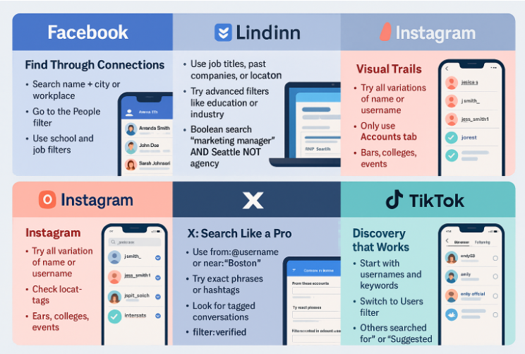 Bonus tip: If you’ve ever had an email or phone number for them, that can be gold. Many platforms still connect accounts this way (even if they don’t make that obvious).