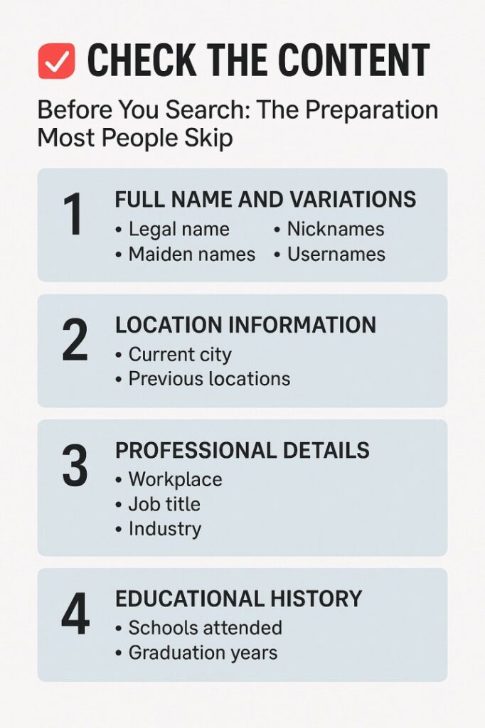 Before doing anything, take a step back and write down what you do know about the person you’re looking for. It doesn’t have to be perfect. Even bits and pieces help.